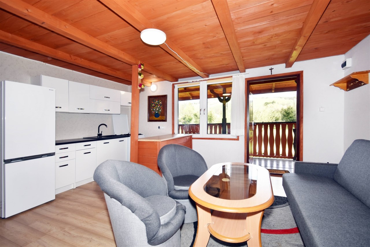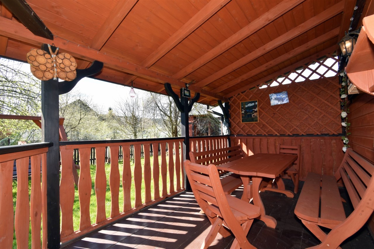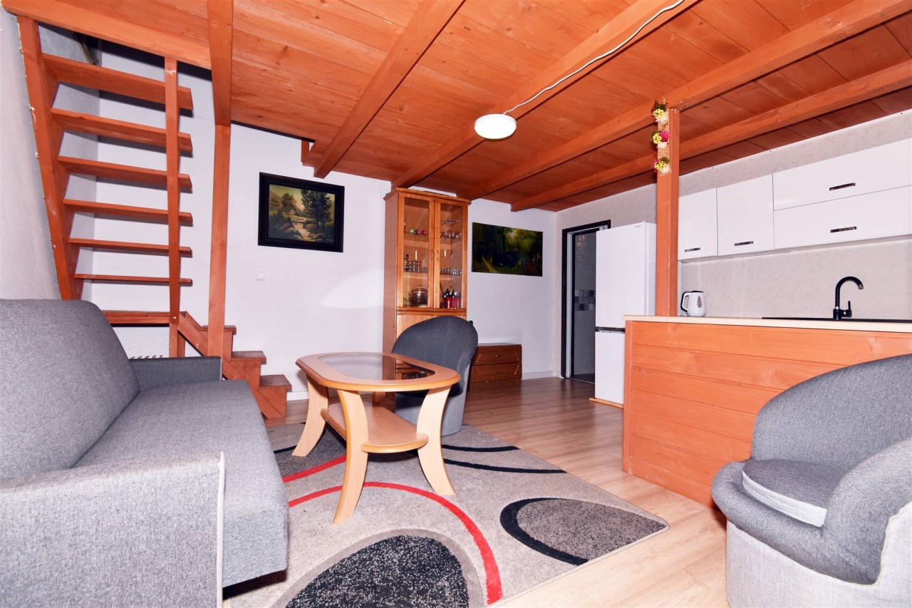 - domek w pełni wyposażony i umeblowany (w kuchni: zlew, lodówka, kuchenka, piekarnik)