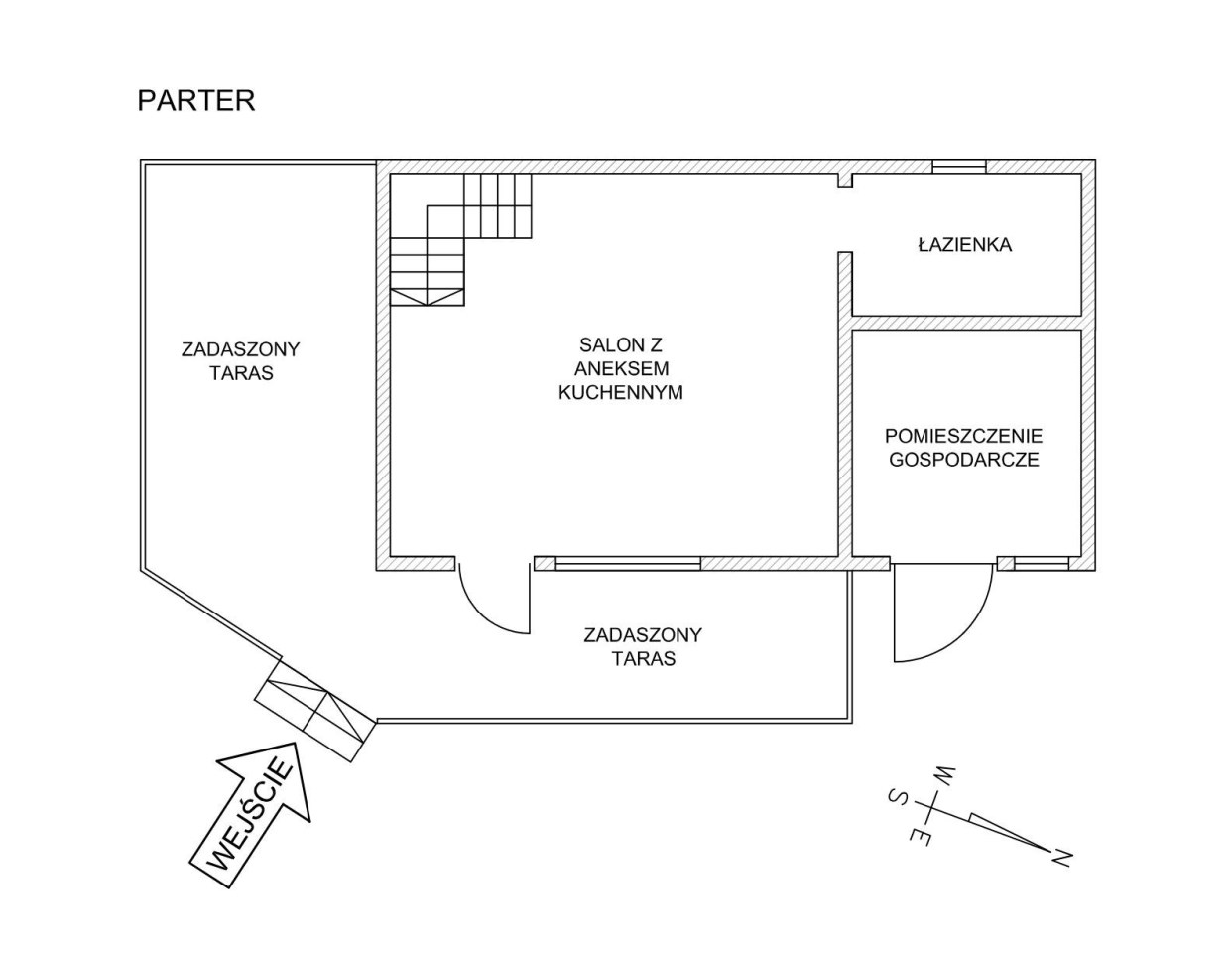 - funkcjonalny i przytulny układ (parter: salon z aneksem kuchennym ok. 19,59 m², łazienka ok. 3,72 m², pomieszczenie gospodarcze ok. 5,92 m², poddasze: sypialnia ok. 18,06 m²)