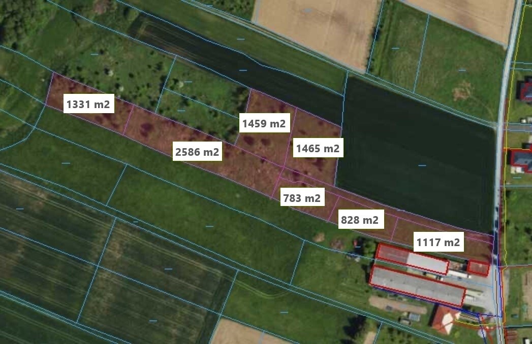 Pierwsza działka (11,17 ara) znajduje się przy drodze asfaltowej. Dojazd kolejnych działek szerokości 5 m (grunt).
