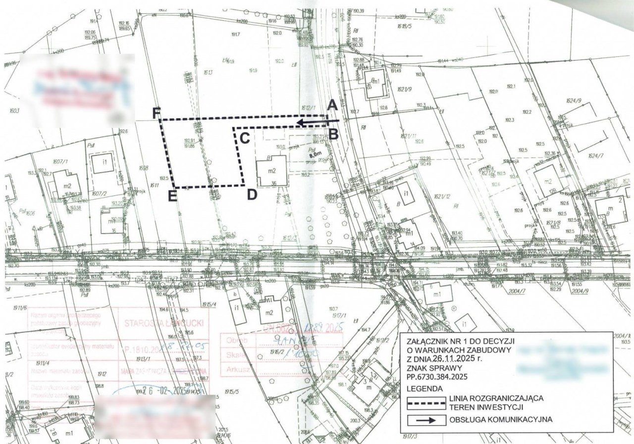 Działka o kształcie zbliżonym do kwadratu, o powierzchni 10 arów. Lokalizacja w pierwszej linii zabudowy przy oświetlonej drodze asfaltowej z chodnikiem. Wymiary: ok. 32,5 m x 31 m (z możliwością powiększenia). W najbliższym sąsiedztwie zabudowa mieszkaniowa. Powstaje tu wiele nowych budynków mieszkalnych jednorodzinnych, także w zabudowie bliźniaczej i szeregowej.